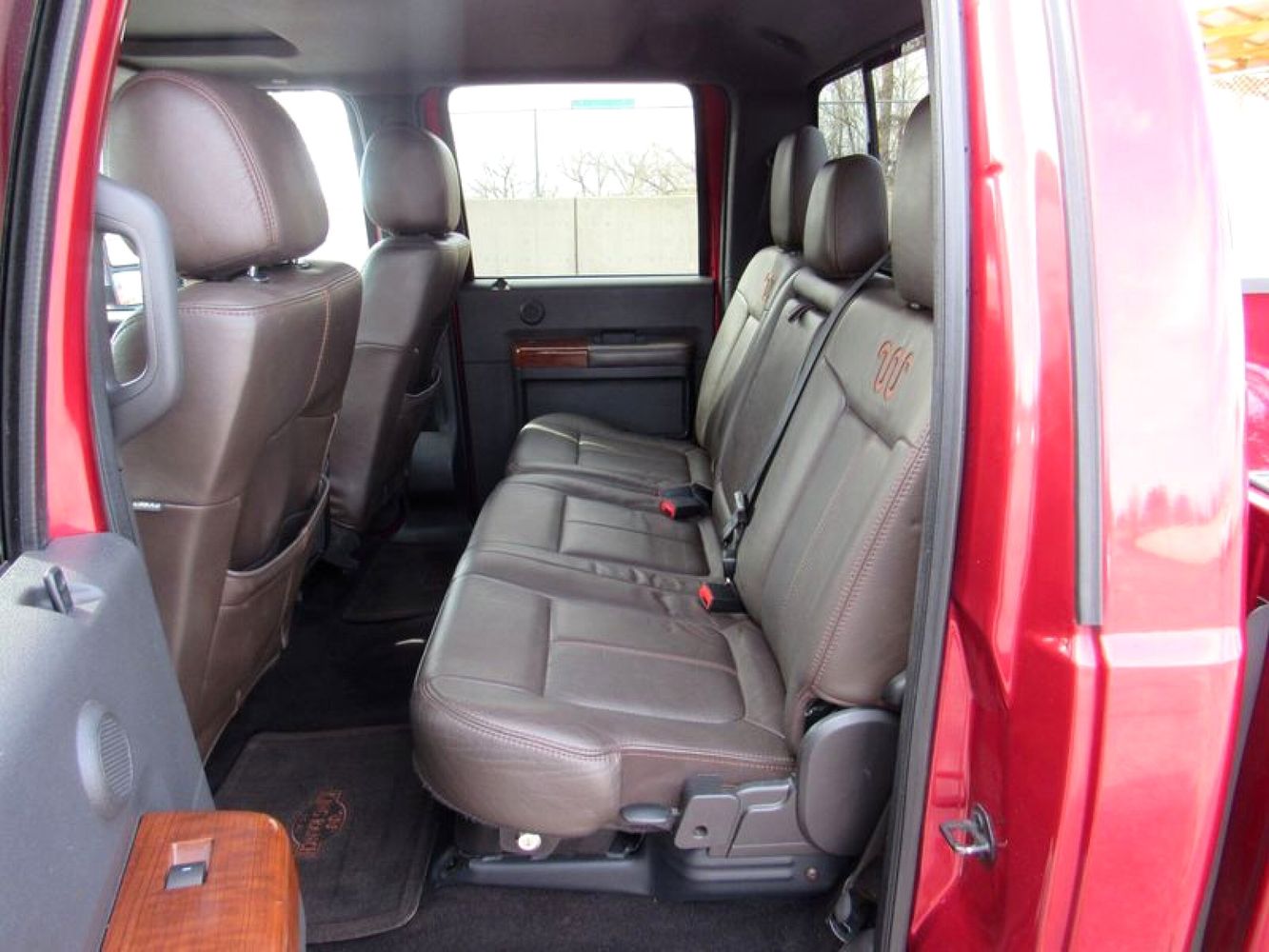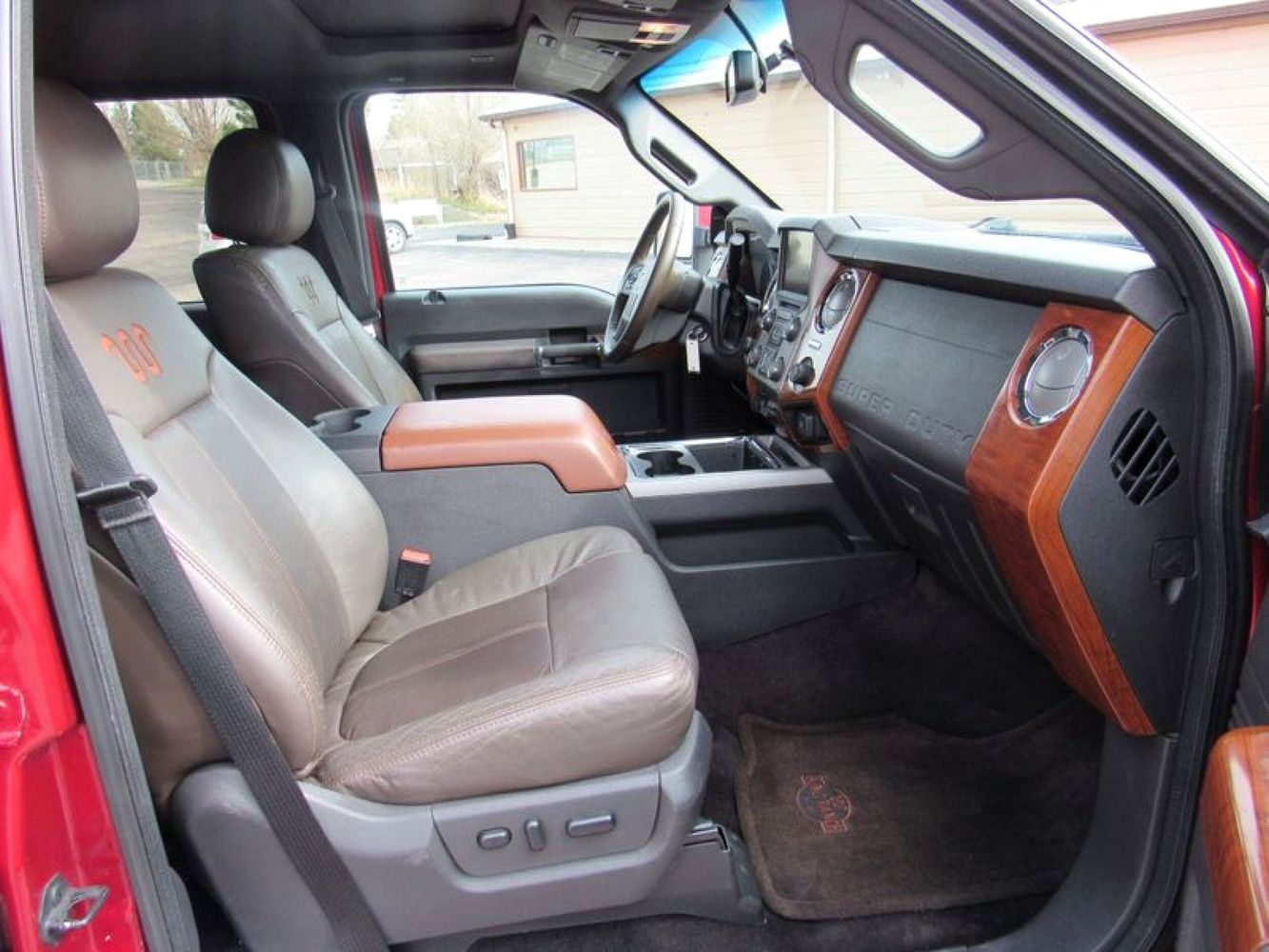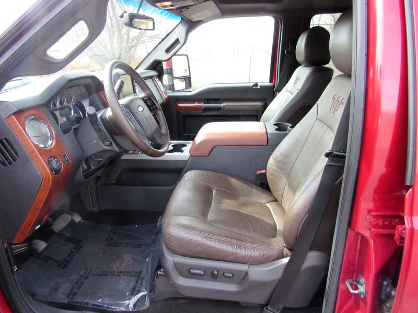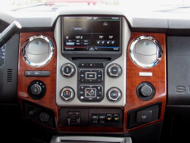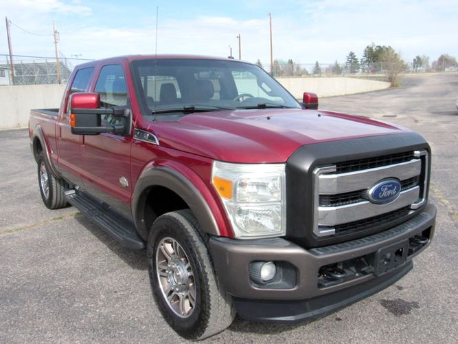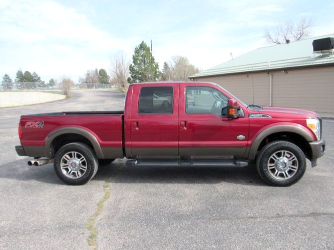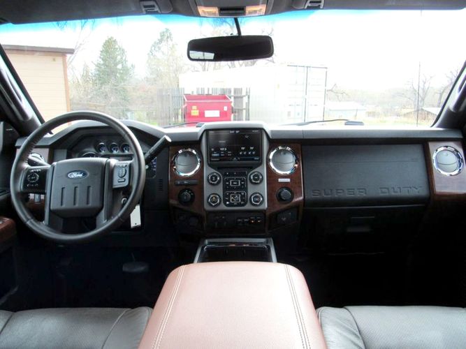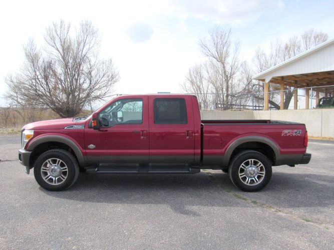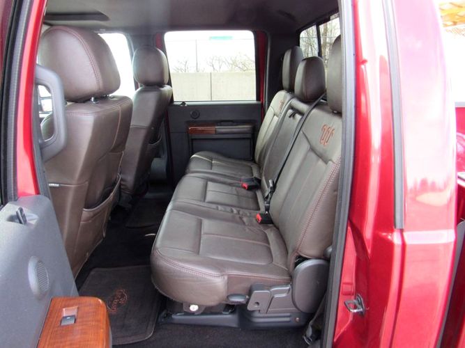 Experience the perfect blend of power and luxury with the 2015 Ford F-250 Super Duty King Ranch. Dressed in a striking Ruby Red Metallic Tinted Clearcoat, this Crew Cab pickup is designed to make an impression both on and off the road. Underneath its bold exterior lies a robust Power Stroke 6.7L Biodiesel Turbo V8 engine, delivering an impressive 440 horsepower for those demanding tasks or adventurous journeys. With its reliable 4WD drivetrain and smooth 6-speed shiftable automatic transmission, this truck is built to tackle any terrain with ease.