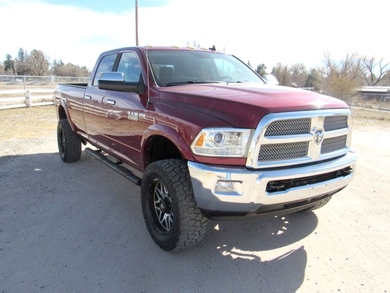Unleash the power and luxury of the 2015 Ram 2500 Laramie Longhorn, a bold statement in Flame Red Clear Coat. This Crew Cab pickup is designed for those who demand both performance and style. Under the hood lies a robust HEMI 6.4L V8 engine delivering an impressive 410 horsepower, paired with a smooth 6-speed shiftable automatic transmission and dependable 4WD drivetrain—perfect for conquering any terrain.