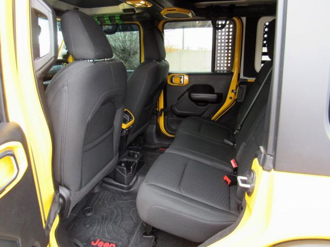Embrace the spirit of adventure with the 2020 Jeep Wrangler Unlimited Sport, a vibrant and versatile SUV designed for those who crave excitement. With its eye-catching yellow exterior, this vehicle is sure to turn heads wherever you go. Powered by a robust 3.6L V6 engine delivering an impressive 285 horsepower and paired with an efficient 8-speed shiftable automatic transmission, this Wrangler offers both power and precision on any terrain. The legendary Jeep 4WD drivetrain ensures you're ready for off-road escapades or city cruising alike.